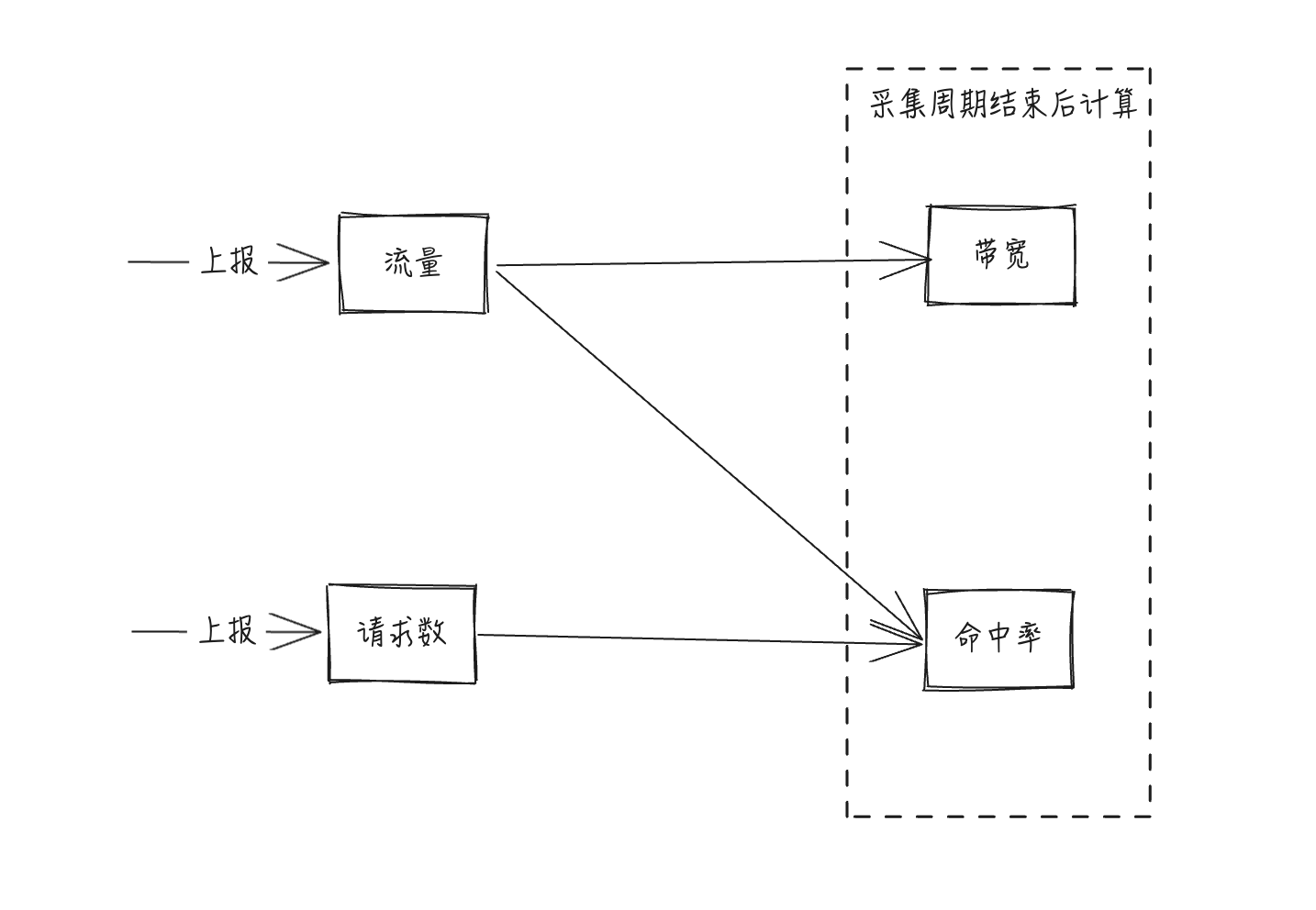 节点上报数据不能保证数据同一时间到达管理端,所以带宽、命中率计算需要在本次采集周期结束后开始。